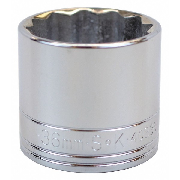 SK Professional Tools 40336 1/2 in. Drive 12-Point Metric Standard Chrome Socket – 36 mm, Cold Forged Steel Socket with SuperKrome Finish, Made in USA
