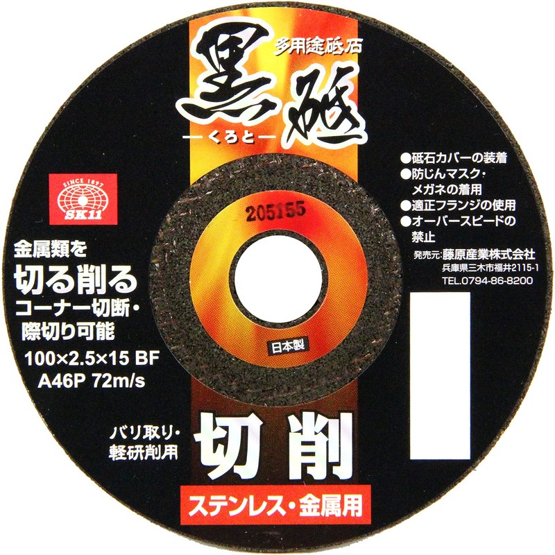 SK11 Abrasive Whetstone for Disc Grinders, Black Whetstone, For Cutting, Metal and Stainless Steel, Pack of 5, 3.9 x 0.6 inches (100 x 2.5 x 15 mm)