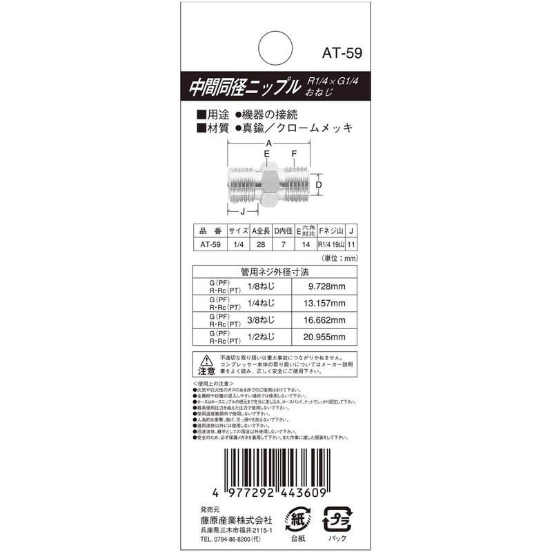 | Size: | おねじR(PT)1/4 おねじG(PF)1/4 |