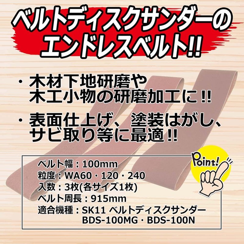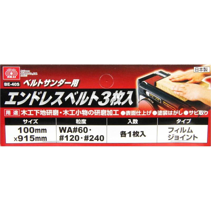 SK11 BE-40S Endless Belt for Belt Sanders WA#60, 120, 240, 3 Pieces, 3.9 x 36.2 inches (100 x 915 mm)