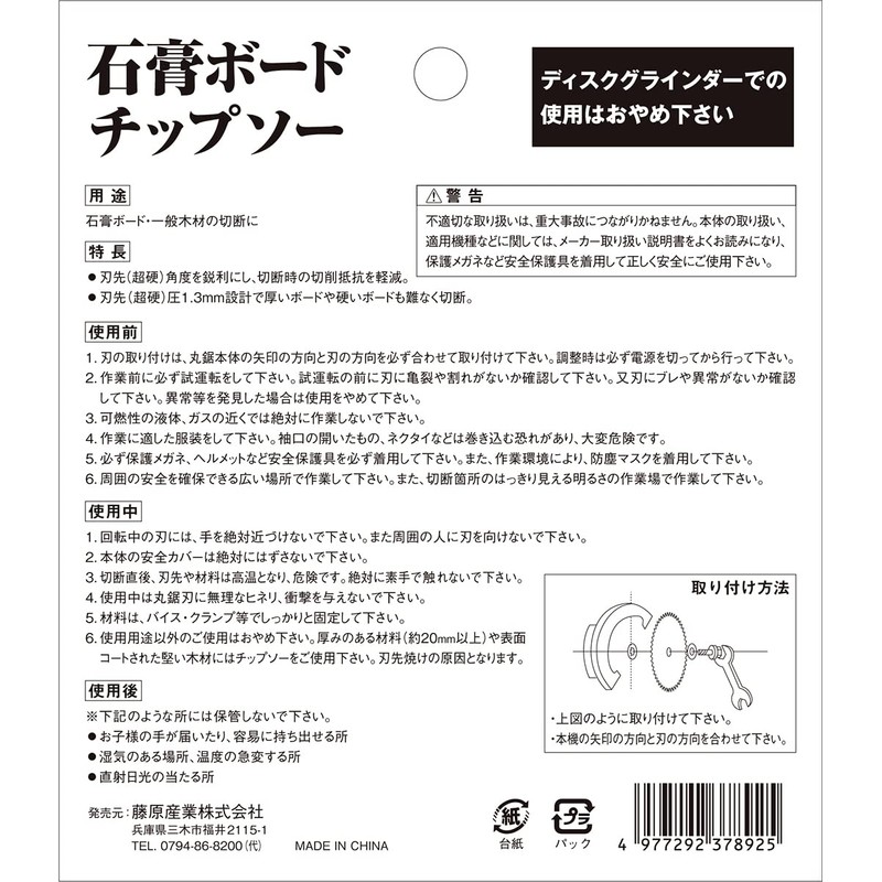 SK11 Chip Saw for Gypsum Board, 100 x 30P