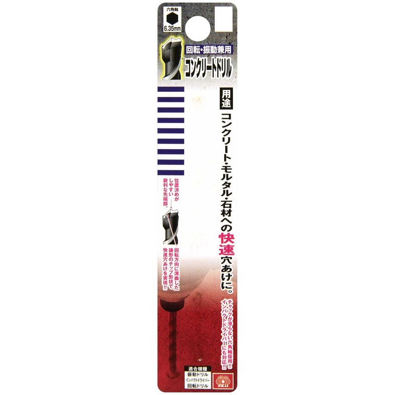 SK11 Concrete Drill, Hexagonal Shaft, For Both Rotation and Vibration, 0.26 inches (6.5 mm)
