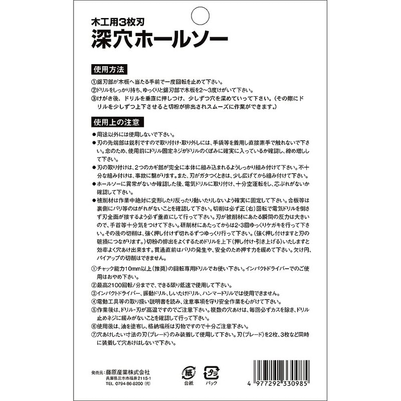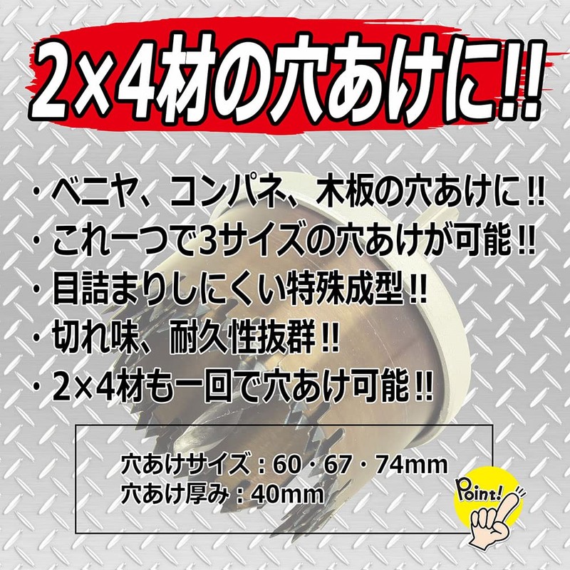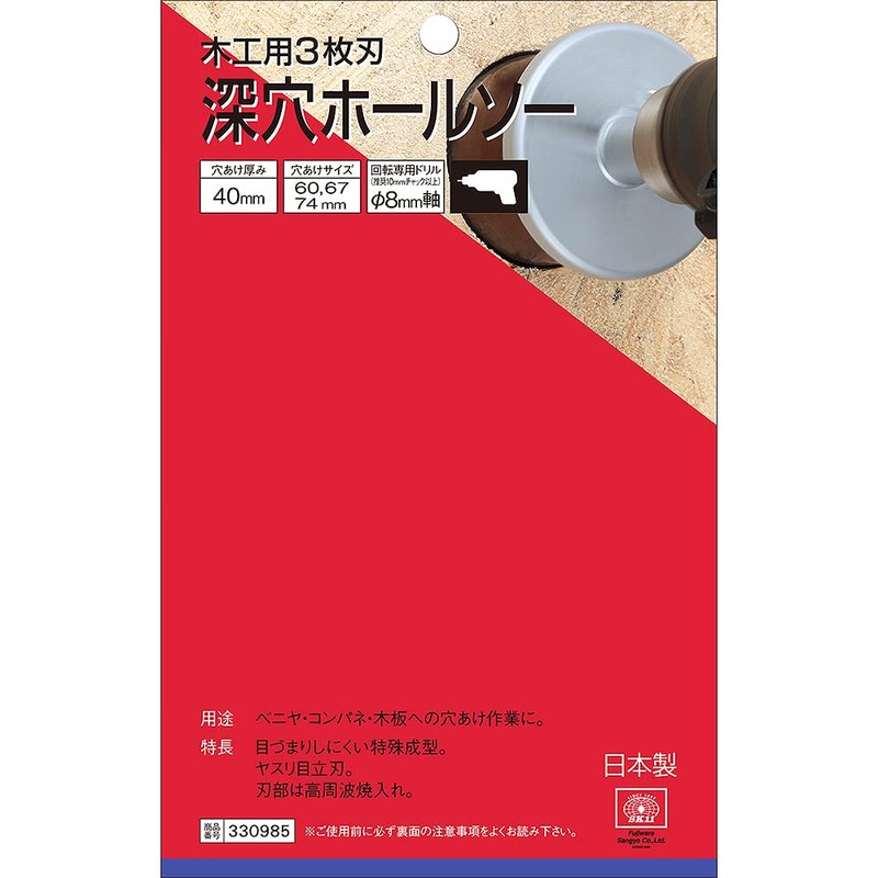 SK11 Deep Hole Saw for Carpentry, 3 Blades, Hole Drilling Thickness: 1.6 inches (40 mm)