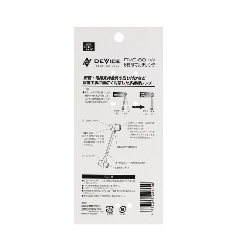 SK11 DEVICE DVC-601W 6 Function Multi Wrench, 72 Mounts, 0.39, 0.47, 0.59, 0.55, 0.55 inches (8/10/12/13/14 mm), Thumbscrew Compatible