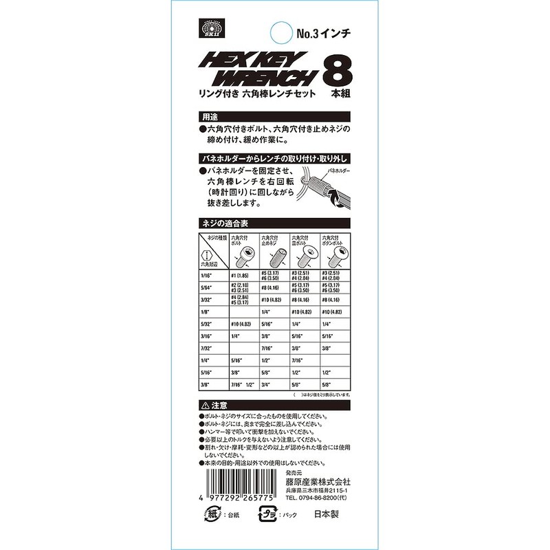 SK11 Hex Key Wrench Set, Set of 8, No.3 Inch