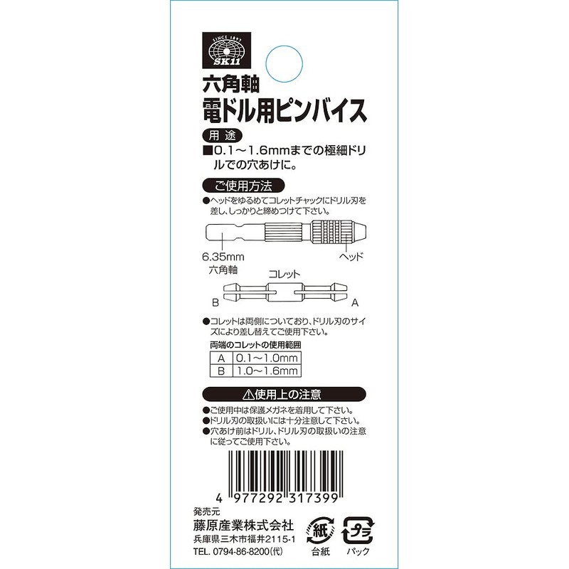 SK11 Hex Shaft Pin Vise 0.0004 - 0.06 inch (0.1 - 1.6 mm)