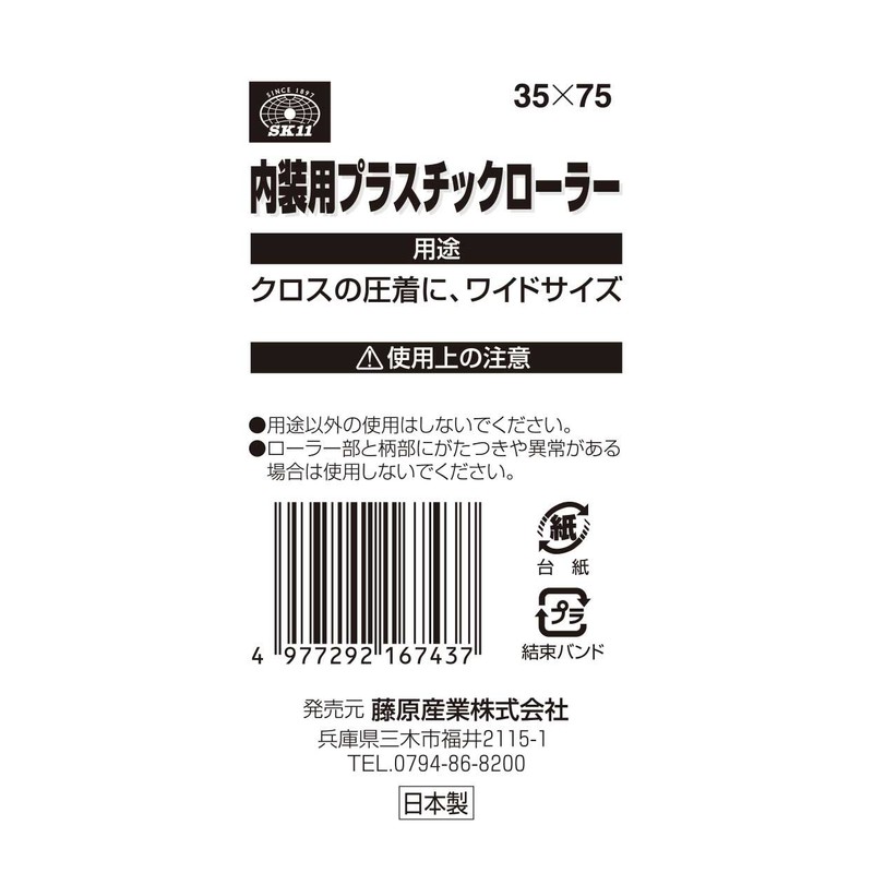 SK11 Plastic Roller for Interior Use, Wooden Pattern, Wide Size, 1.4 x 3.0 inches (35 x 75 mm)