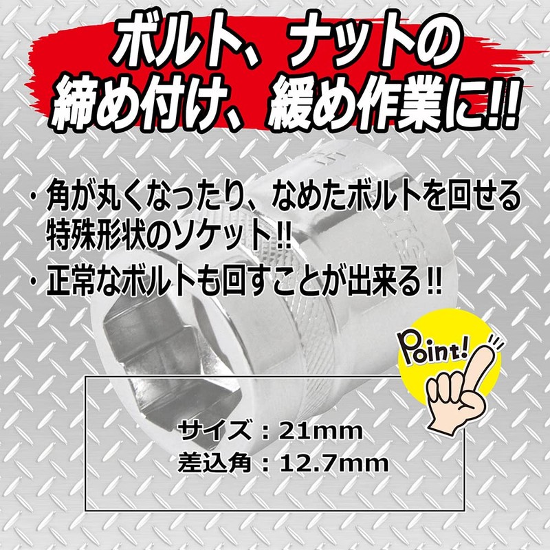 - Features: Special shaped socket with rounded corners, turning torn bolts