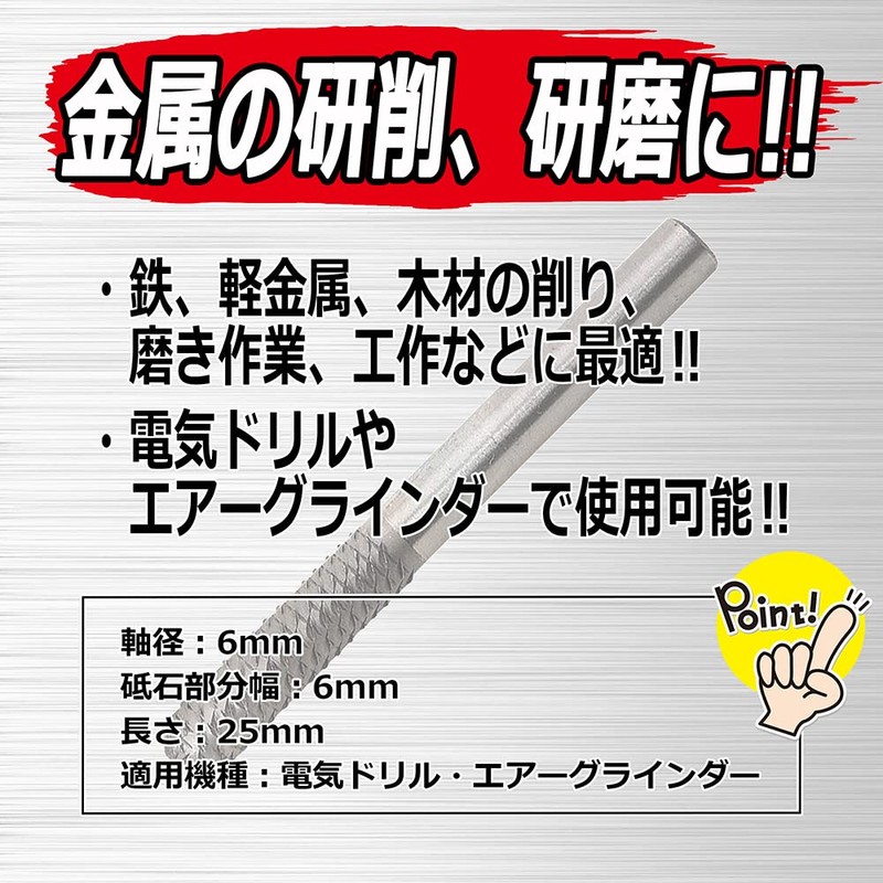 SK11 Shaft Diameter 0.2 inch (6 mm), Rotary File for Ironwork, 0.2 x 1.0 inches (6 x 25 mm), No.2