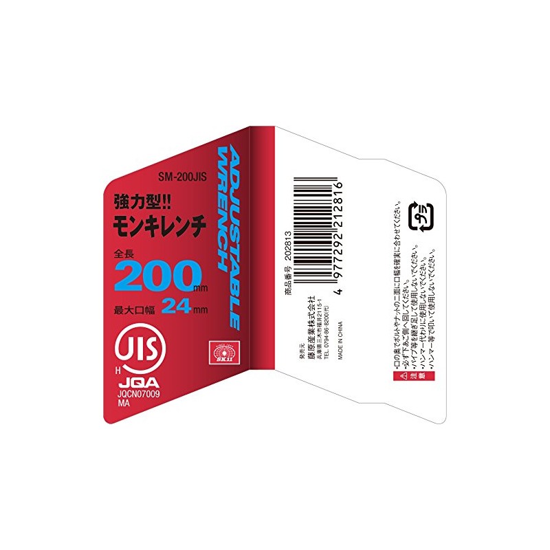SK11 SM-200JIS Monkey Wrench Maximum Opening Width 0.9 inches (24 mm)