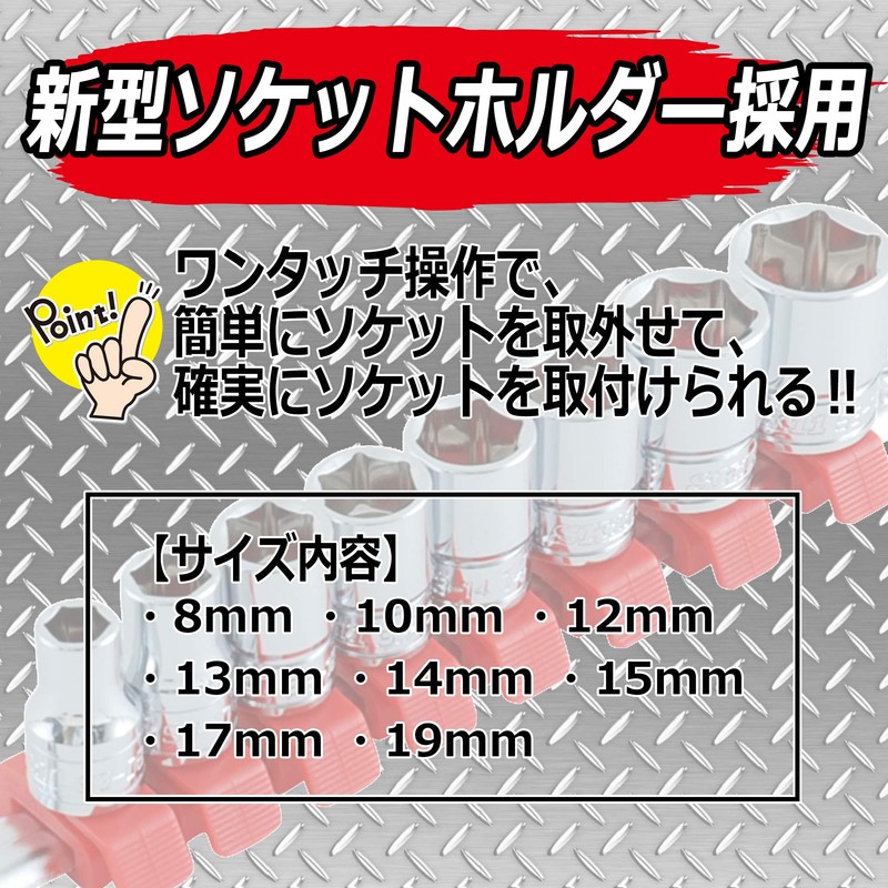 | Size: | 差込角9.5mm、サイズ:8・10・12・13・14・15・17・19mm |