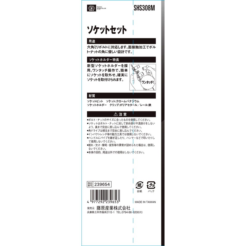 SK11 Socket Set, Hexagonal SHS308M, Clip Color: Red, Insertion Angle: 0.37 inches (9.5 mm), 8 Pieces, 1 Set