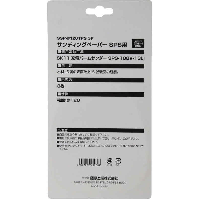 SK11 充電パームサンダー用 サンディングペーパー SPS用 3枚入 SSP-#120TPS