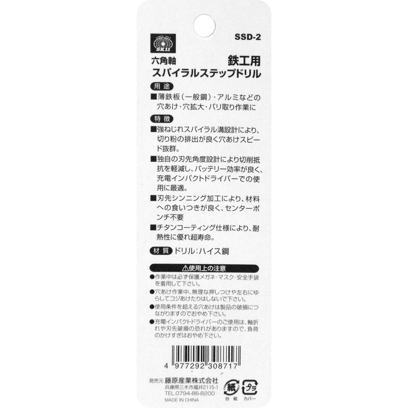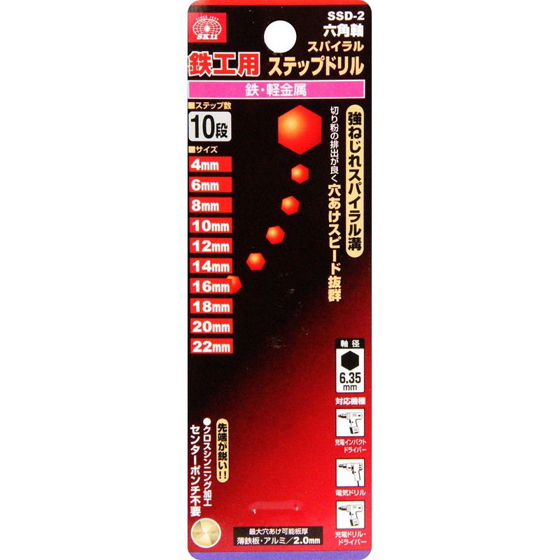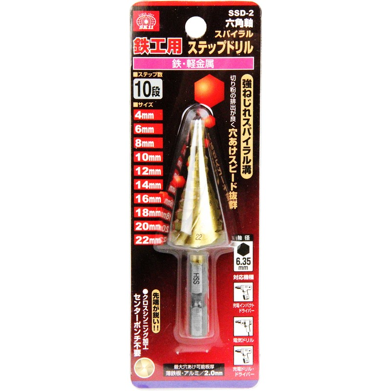 SK11 SSD-2 Hexagonal Shaft Spiral Step Drill for Ironwork 0.1 - 0.9 inches (4 - 22 mm)