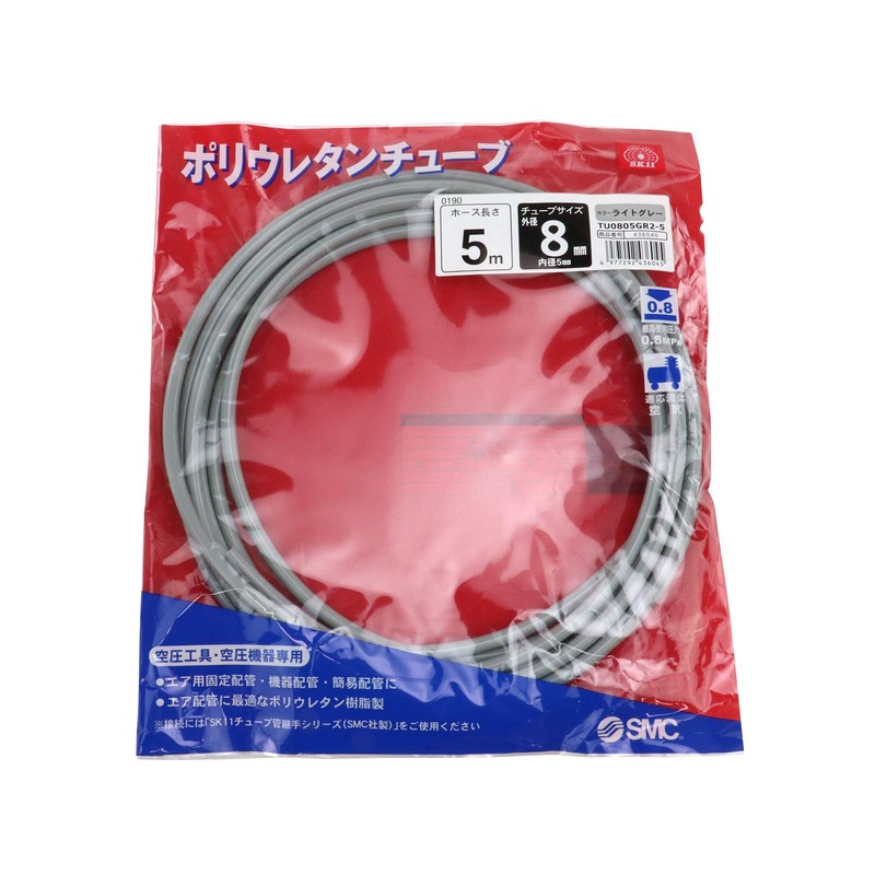 SK11 TU0805GR2-5 Polyurethane Tube Outer Diameter 0.3 inch (8 mm), Length 16.4 ft (5 m), Light Gray, For Air Piping