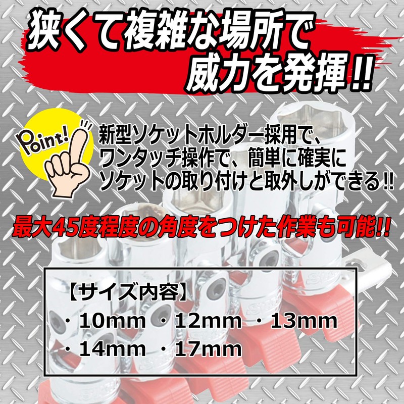 SK11 Universal Socket Set SHS305U Insertion Angle: 0.37 x 0.4 - 0.7 inches (9.5 x 10 - 17 mm), 5 Piece Set, 1 Set