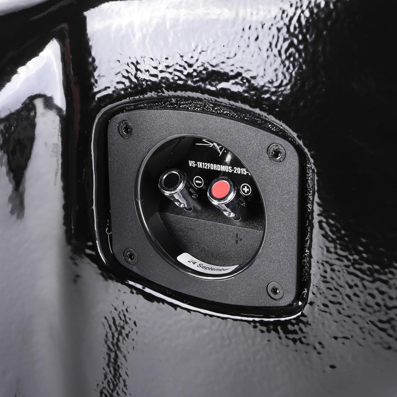 Skar Audio engineered this custom fit, single 12-inch, sealed subwoofer enclosure specifically to fit 2015-2025 Ford Mustang hardtop vehicles (Not Compatible with Convertible models). Unmatched by anything else on the market today, this side-firing subwoofer enclosure was designed from the ground up by our master craftsman to ensure it is a perfect OEM fit in the vehicle. If you are looking to achieve incredible levels of bass output in your Mustang, this single 12" sealed enclosure is the perfect solution for housing your subwoofer. The sealed, side-firing design of this enclosure allows your subwoofer to come alive, while also preserving the limited cargo space most users are reluctant to give up in their trunk. Our custom-fit enclosures raise the bar when it comes to strength and reliability; constructed entirely out of premium hand-laid fiberglass. Engineered from the ground up with every detail carefully analyzed to ensure perfect fitment and compatibility. From there, we line the subwoofer chamber wall with poly-fill to enhance the overall versatility and depth of sound that this enclosure reproduces. Coinciding with the separate subwoofer chambers are independent terminal cups that feature premium 12-gauge OFC speaker wire, pre-soldered and connected to the terminals on the interior of the enclosure. Finally, the enclosure is finished in a premium gray trunk-liner carpet, allowing it to blend right in with your vehicles interior.