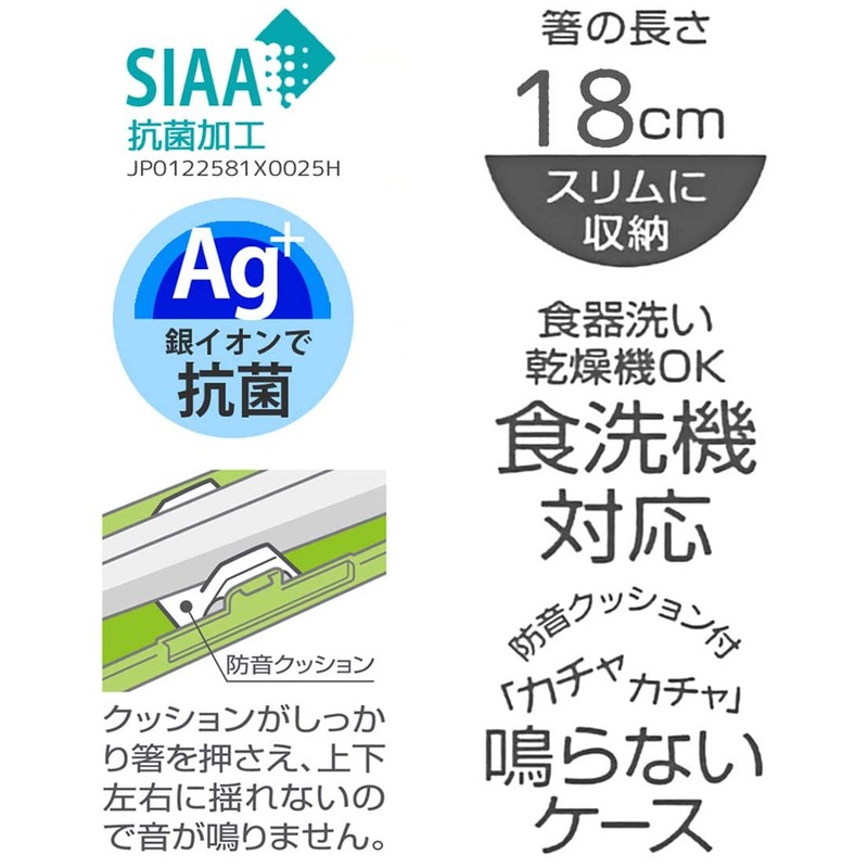 Skater ABC3AG-A Sage Green Chopsticks and Case Set, 7.1 inches (18 cm), Antibacterial for Adults, Made in Japan
