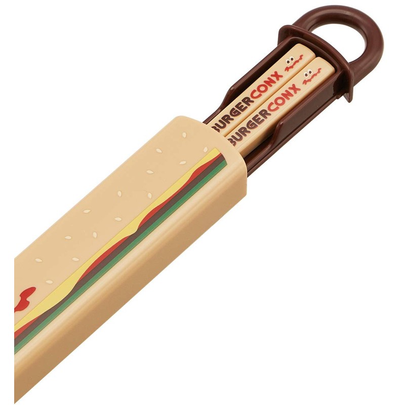 Skater ABS2AMAG-A Children's Antibacterial Slide Chopsticks Case Set, Burger Conx, Made in Japan