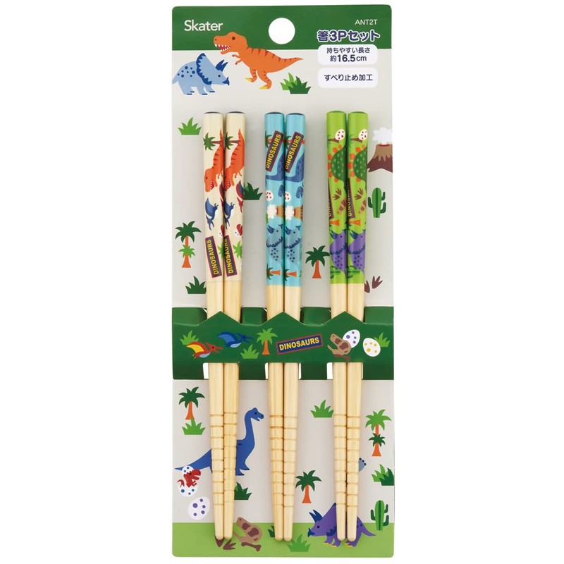 Skater ANT2T-A Dinosaurus Bamboo Chopsticks, 6.5 inches (16.5 cm), Set of 3 Pairs