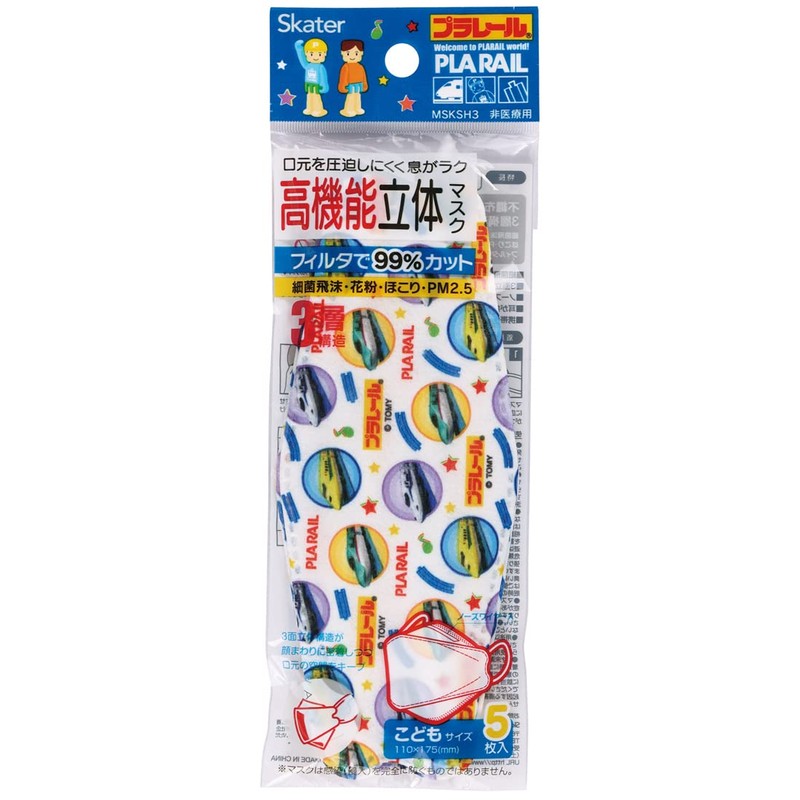 Skater MSKSH3-A 3D Non-woven Fabric, 3-Layer Mask, Small, Children's Size, Plarail, 5 Pieces