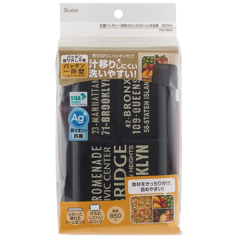 Skater PALT9AG-A Bento Box, Fluffy, Antibacterial, 4 Locks, Integrated Washer, 28.9 fl oz (850 ml), Brooklyn