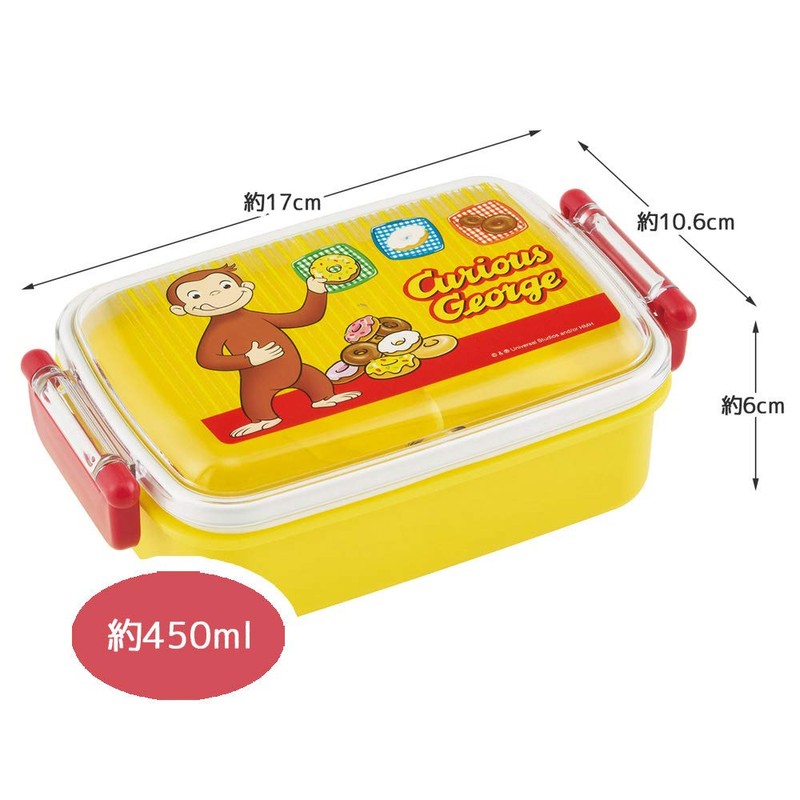 Skater RBF3ANAG-A Children's Antibacterial Lunch Box, Fluffy, 15.9 fl oz (450 ml), Curious George, Boy, Made in Japan