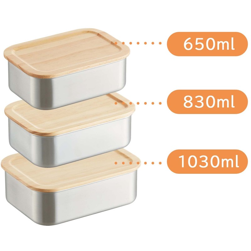 Skater STCN11-A Stainless Steel Storage Container with Wooden Lid, Side Dish Container, 32.8 fl oz (1,030 ml), Large Capacity