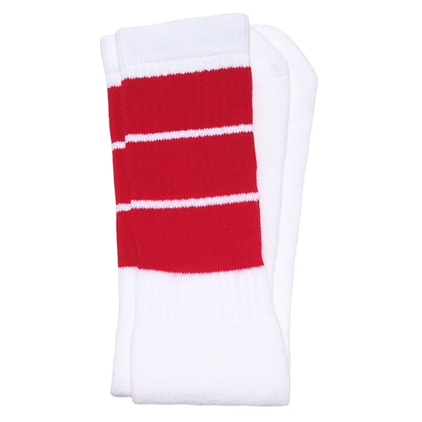 SKATERSOCKS 22" Knee high White tube socks with Red stripes style 5