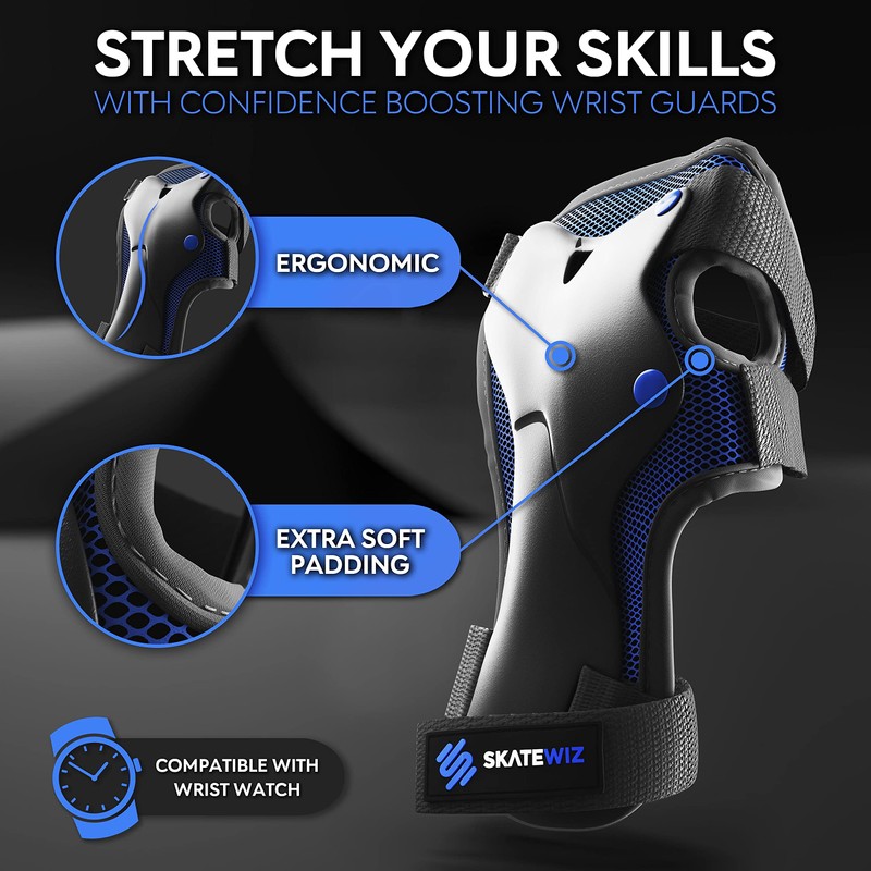 SKATEWIZ Knee and Elbow Pads Adult - Skating Pads Adult Knee Pads Scooter - SMASH - Size L Blue Black - Wrist Guards Skating Adult - Scooter Knee Pads Skate Pads
