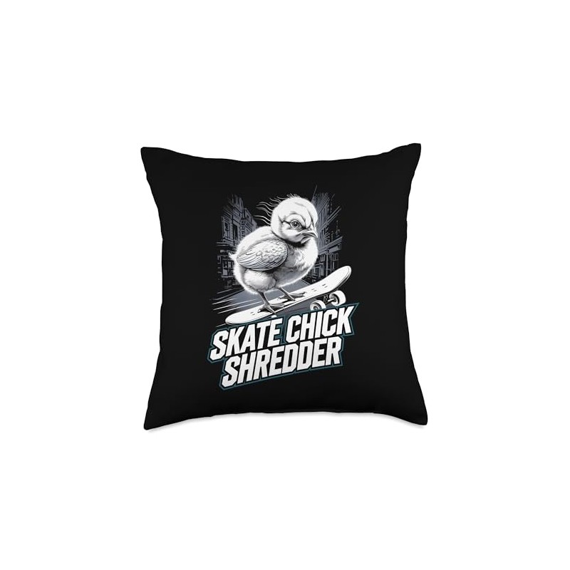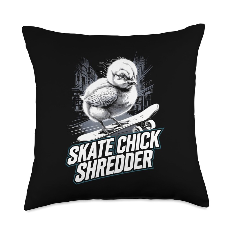 Skating Baby Chicks Skate with Skateboard Cute Skateboarding Throw Pillow
