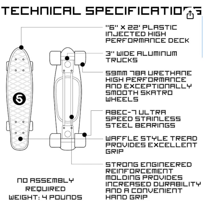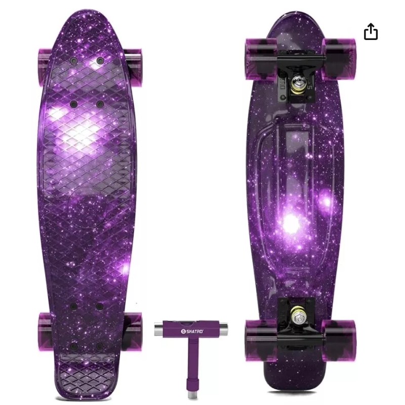 Skatro Mini Cruiser Skateboard. 22x6inch Retro Style Plastic Board Comes Complet