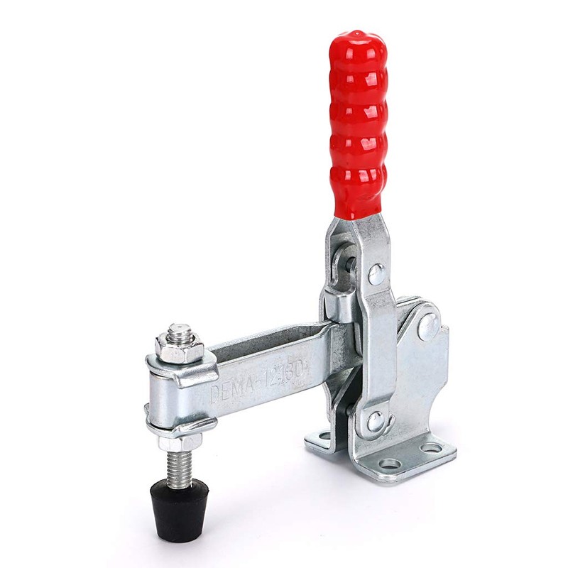 Thees vertical toggle clamp are made of cold-rolled carbon steel with zinc plated coating and also have a easy adjustable rubber foot. Each vertical toggle clamp holds up to 227kg, working well holding workpieces flat and tight to the working surface. It’s great for installing on jigs, table, tool fixture or moveable surface for welding, woodworking. Specification: Type: Vertical