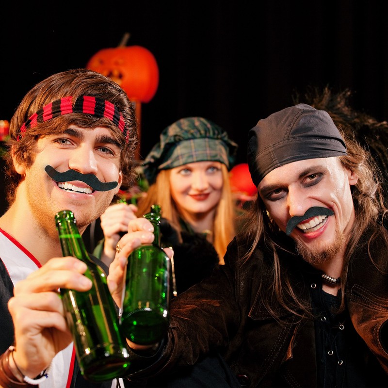- Skeleteen Stick On Mustaches is a great costume accessory for Halloween.