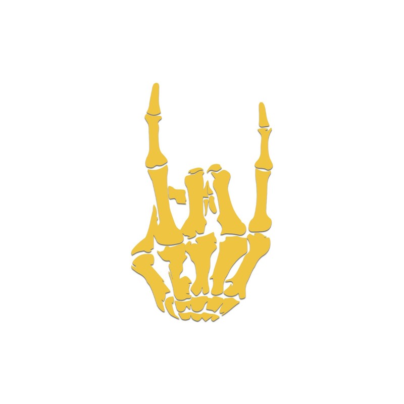 Skeleton Devil Horns Hand Vinyl Decal Notebook Car Laptop 3.25" x 5.5" (Yellow)
