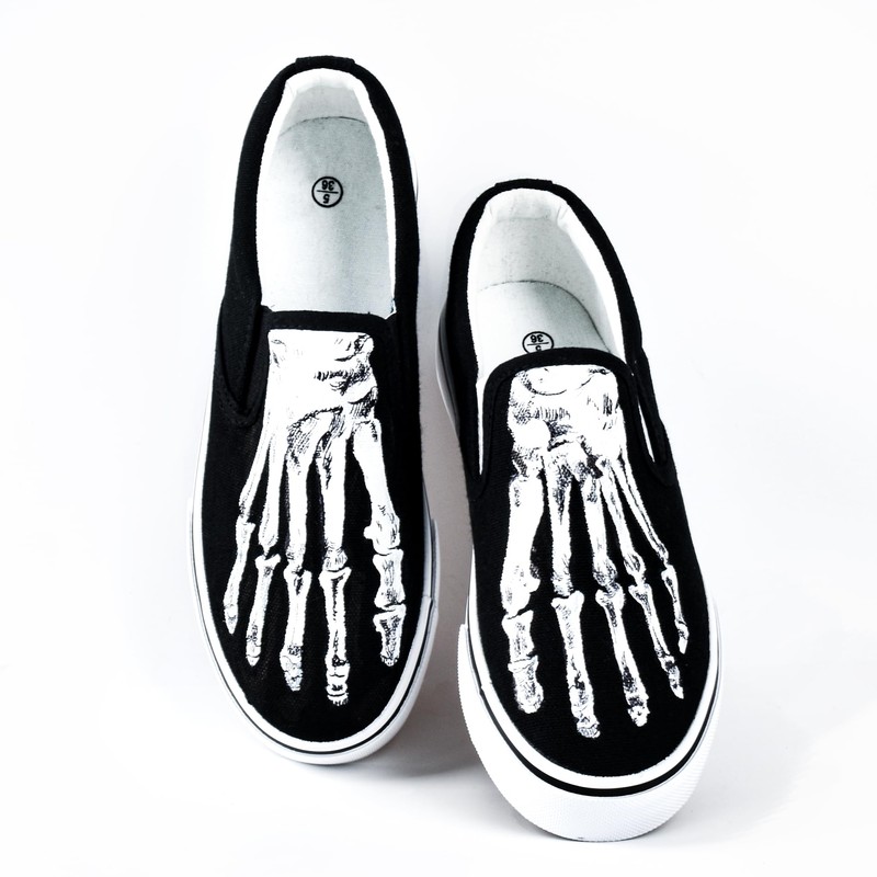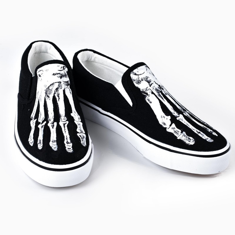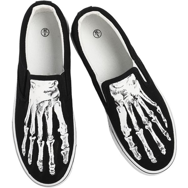 Skeleton Feet Shoes Slip-on Hand Painted Skull Pattern Comfortable Casual Canvas Shoes Unique Customized Gifts (Men 7/Women 9)