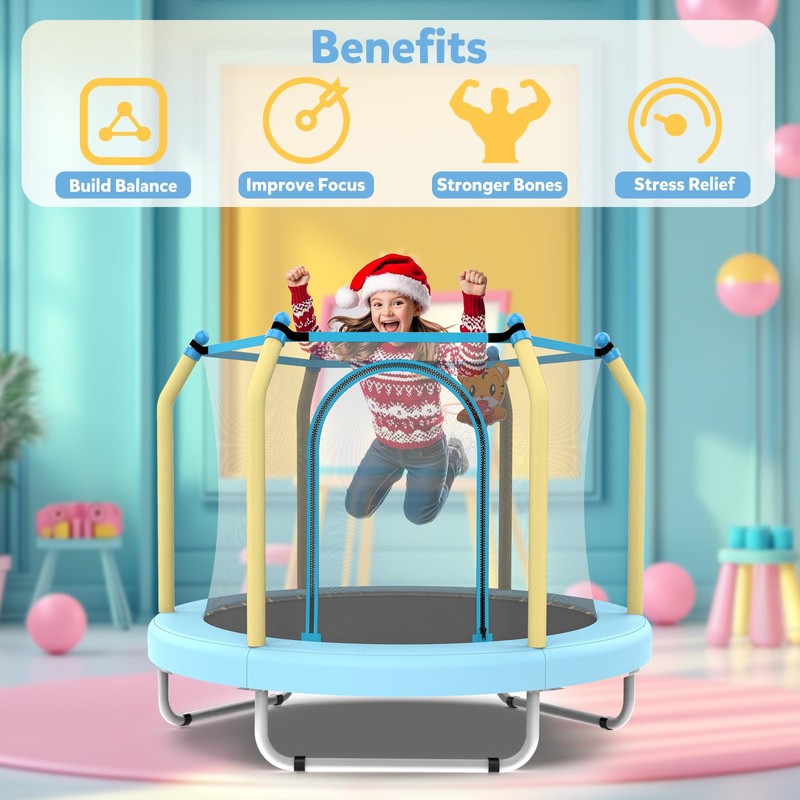 - 【Easy assembly】Trampoline indoor for kids comes with all the necessary accessories in one package, as well as detailed instructions and assembly videos to ensure quick and easy installation. Get your trampoline ready and have fun in no time.