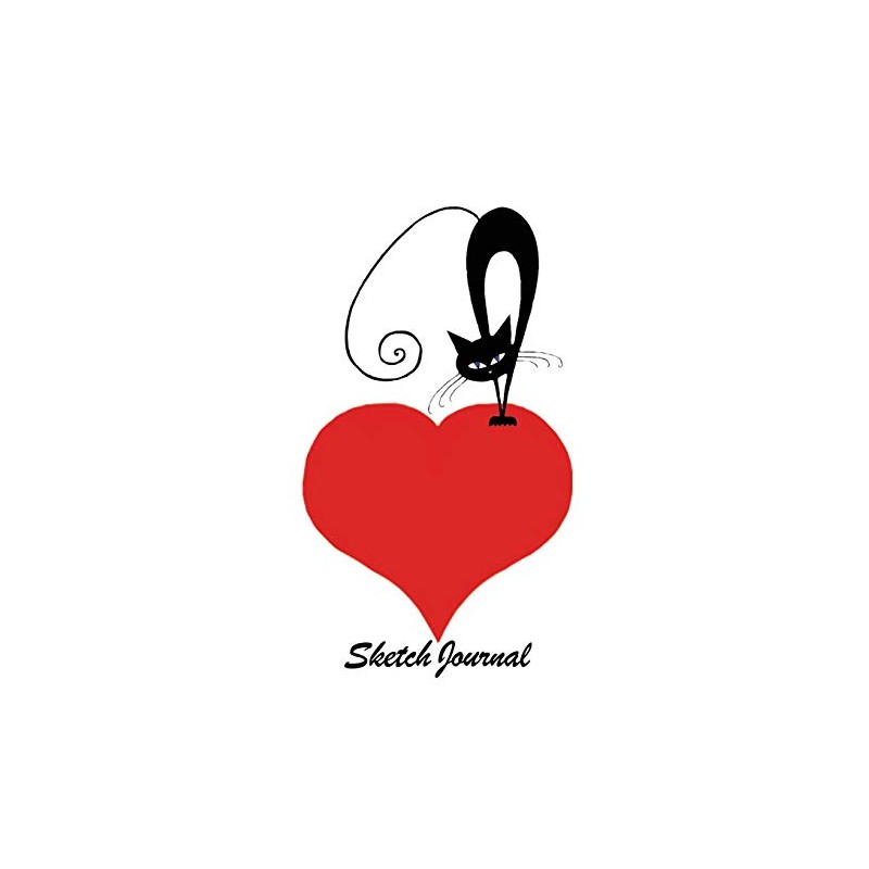 Sketch Journal: Black Cat on Heart 6x9 - Pages are LINED ON THE BOTTOM THIRD with blank space on top