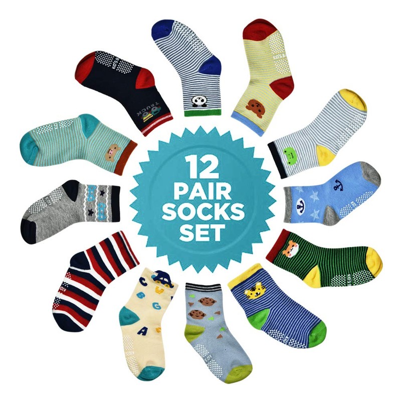 - COMPLETE SIZE AND COLOR: SKiBeaut Toddler Socks is for 1-3/3-5/5-7 years old Kids Baby Girls Boys and 1-3t/3-5t/5-7t Toddler. 12 pairs of packaging Grips Cotton Crew Socks allows your baby to always have clean socks to replace and keep their feet clean.A variety of colors will certainly make it easy for you to match them with all kinds of good-looking clothes.You can also use our socks play pairing games with your baby to add more fun and happiness.
