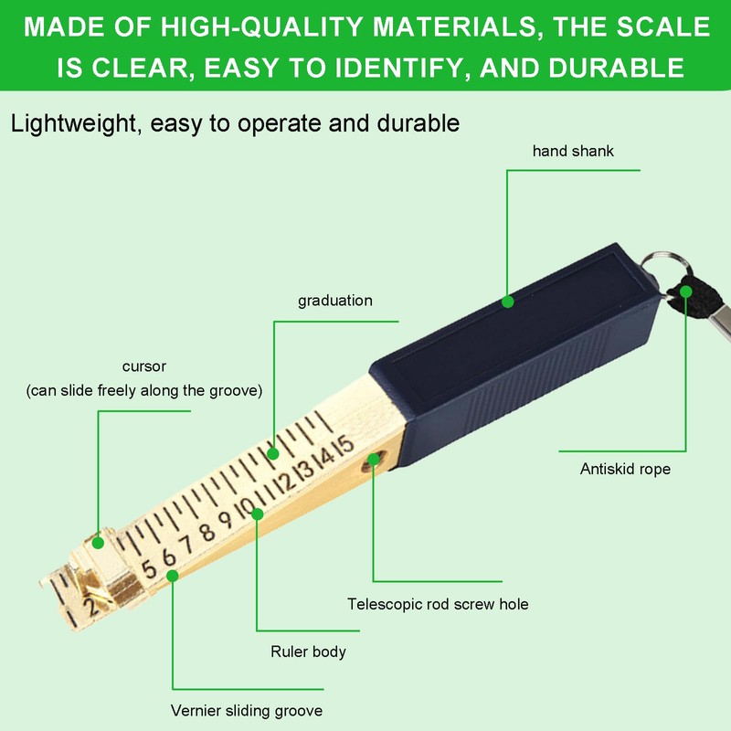- Measurement Range: The wedge-shaped vernier feeler gauge is equipped with a vernier scale for easy reading of measurement results. It has a measuring range of 0.1mm to 15mm and an accuracy of 0.5mm. The gauge measures 150*15*17mm.