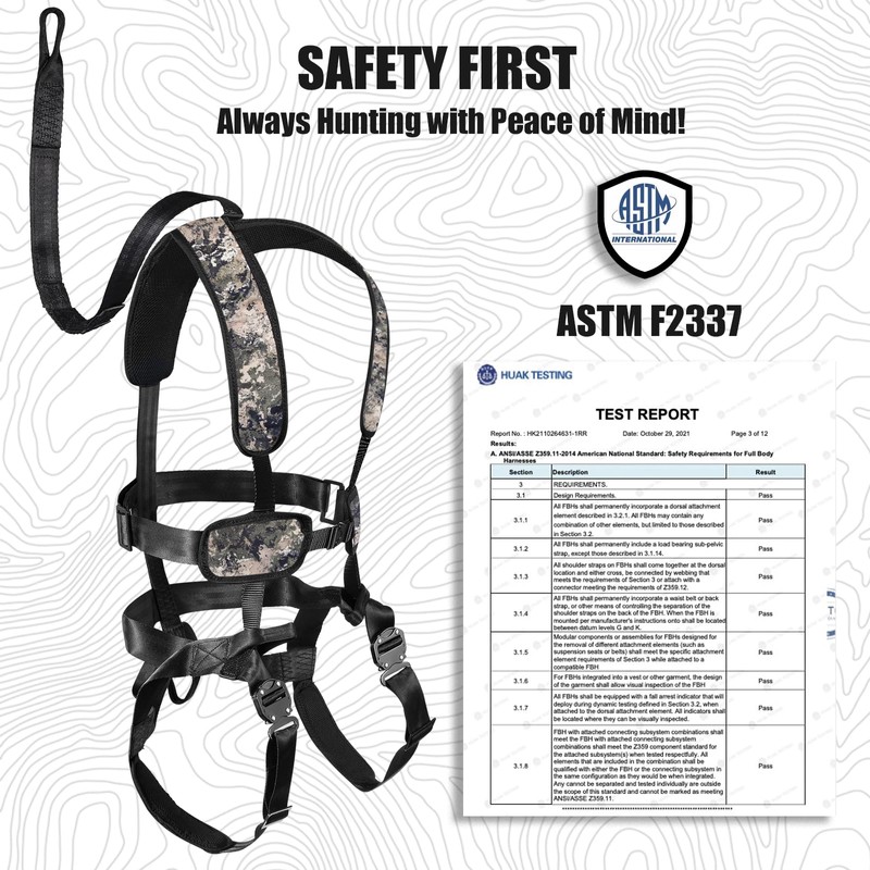 - STAY SAFE THE HUNT: The SKIGUARD treestand hunting safety harness includes everything you need to stay safe while you climb to your hunting spot. Safety harness to stay safe and secure while you are hunting in a tree stand, Quick release buckles for maximum strength and safety, Quick- release leg buckles with adjustable leg straps, durable elastic chest strap to keep harness to chest. Use the strap to safely scale a tree while keeping your hands free.