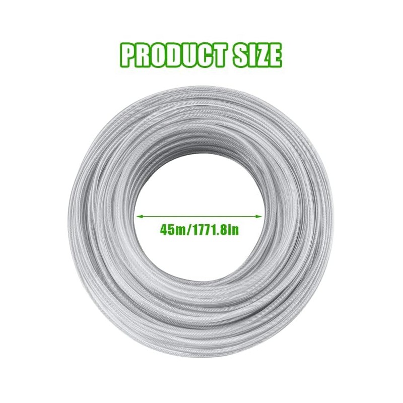 - Size: the diameter (thickness) of the steel wire trimmer line is 3.0 mm, length approx. 45 m. Steel wire trimmer line ideal for replacing the old trimmer cable, durable trimmer line than normal line