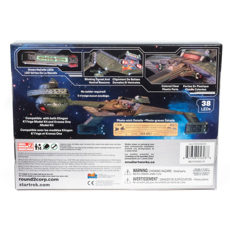 - Brand new box. Contains 38 LEDs. No solder required! Green-Nacelle LEDs. Vintage style packaging. Officially licensed product. Colored clear plastic parts. Blinking dorsal and ventral beacons. Paint and cement required (not included). Manufacturer's original unopened packaging. Compatible with both Klingon K't'inga and Kronos One model kits.
