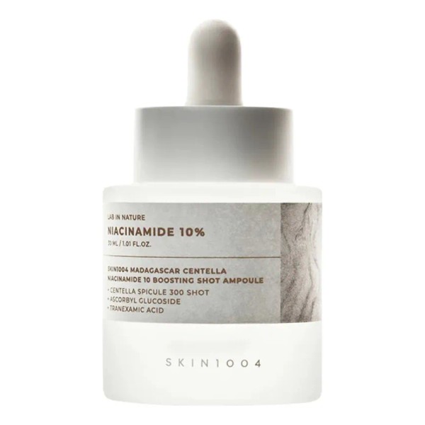 El Boosting Shot Niacinamide 10% de Skin 1004 es un suero concentrado que combina el poder iluminador y equilibrante de la niacinamida con la acción calmante y regeneradora de la Centella Asiática de Madagascar, reconocida por su pureza y eficacia.
