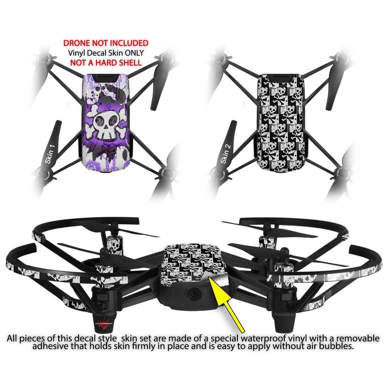 Skin Decal Wrap 2 Pack for DJI Ryze Tello Drone Cartoon Skull Purple Drone NOT Included