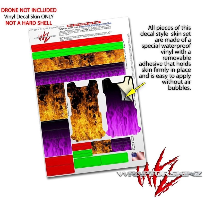 WraptoSkinz skin wraps are printed using superb photo quality designs and vibrant colors printed with special fade resistant inks that last even in direct sun for years. WraptorSkinz are a composite of two layers of commercial grade materials. The bottom layer is a soft, flexible vinyl with a special removable adhesive that is easily positioned, applied without air bubbles. Next we print the bottom layer with UV protected, fade resistant inks that deliver superb photo quality designs in vibrant colors. Finally we bond a professional grade laminate over the entire skin adding a glossy protective finish. This product is not affiliated with or endorsed by the Ryze or DJI brand.