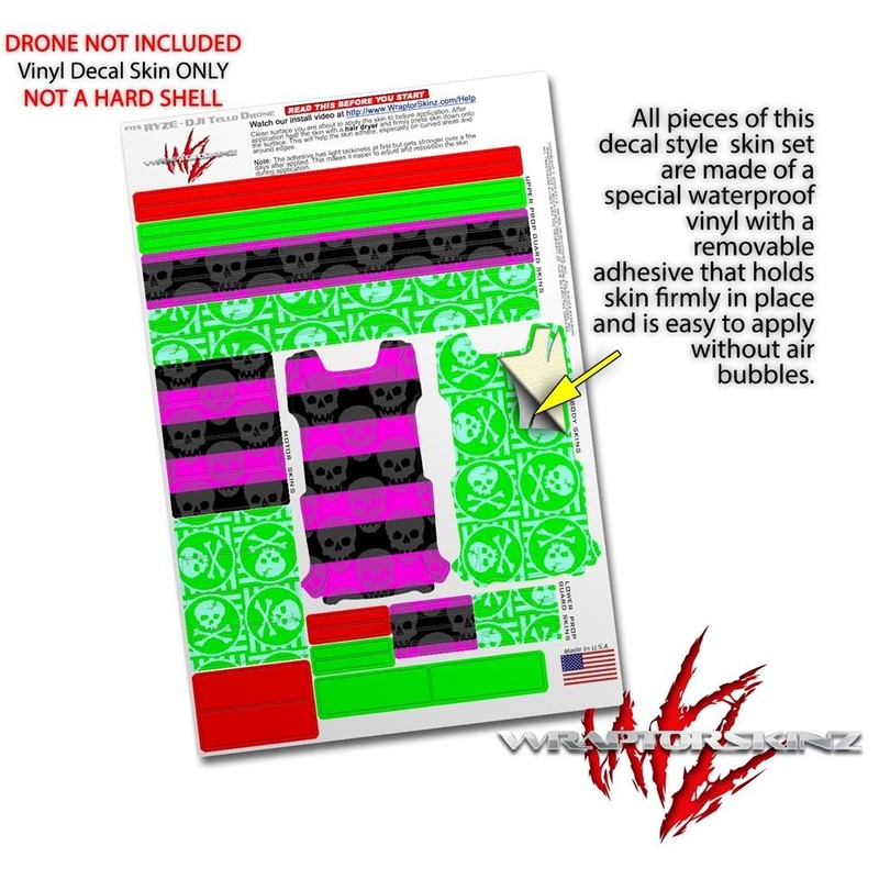 Skin Decal Wrap 2 Pack for DJI Ryze Tello Drone Skull Stripes Pink Drone NOT Included