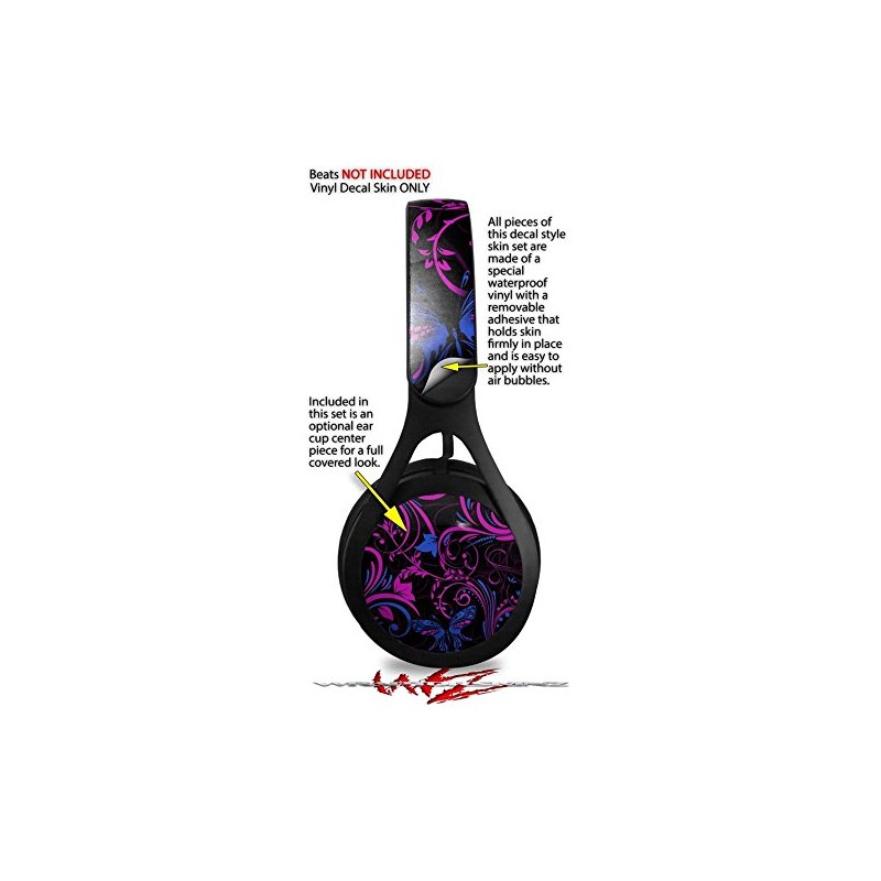 - Decal style skin wrap covers headphone band top surface and ear cups.