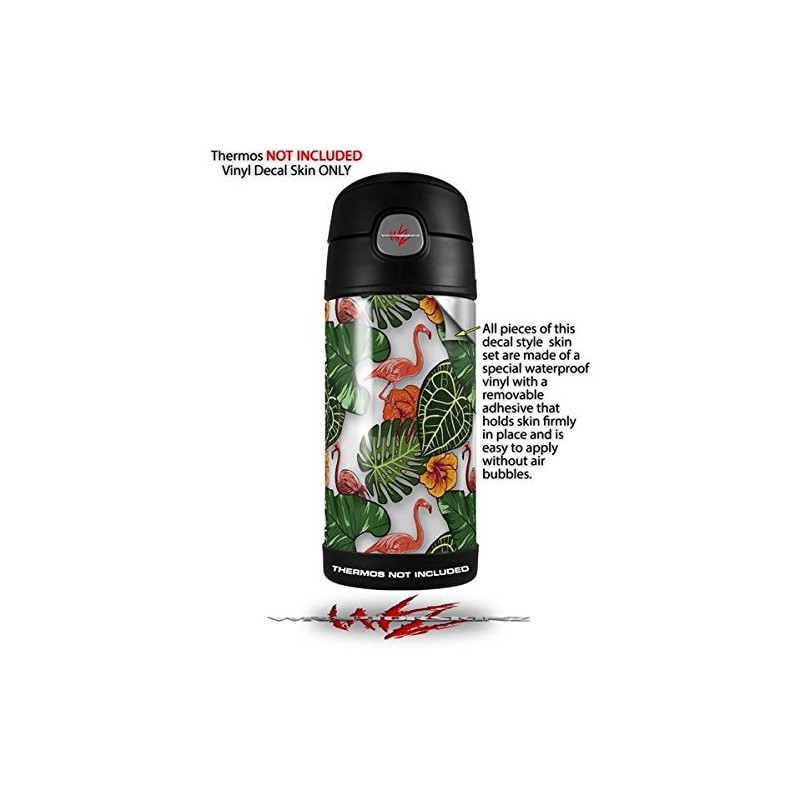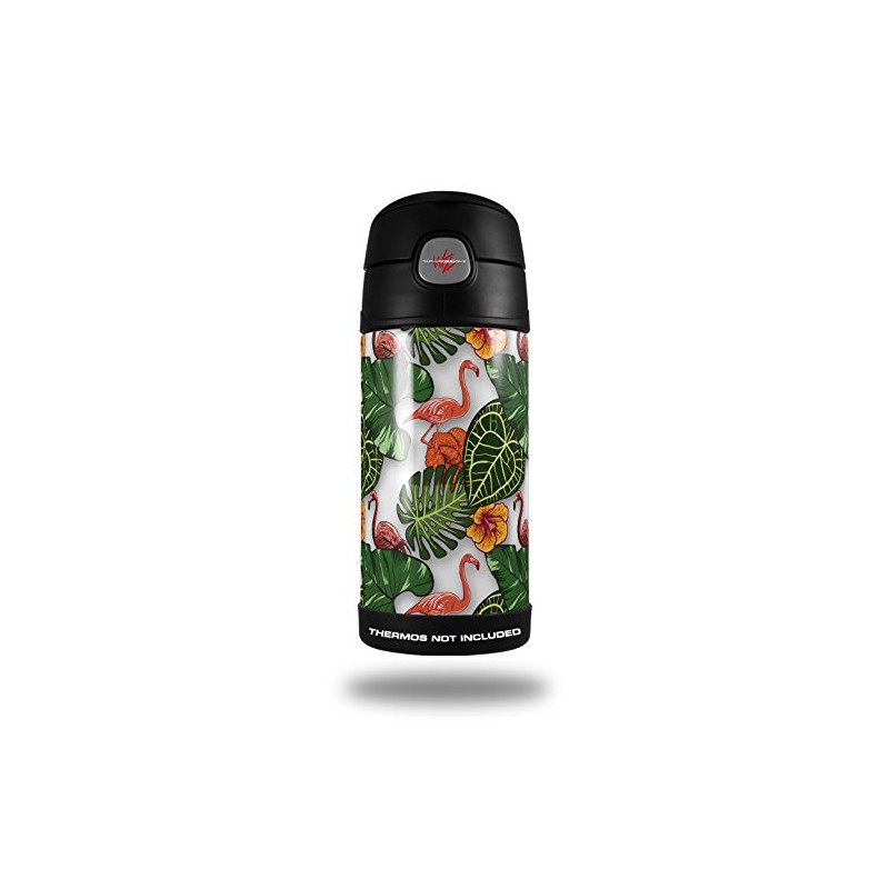 Skin Decal Wrap compatible with Thermos Funtainer 12oz Bottle Famingos and Flowers White (BOTTLE NOT INCLUDED) by WraptorSkinz