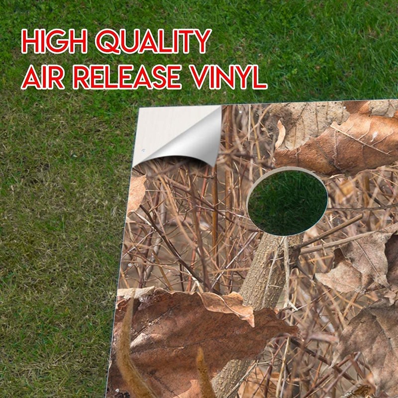 Skin Decals Vinyl Wrap for Cornhole Game Board Bag Toss (4 pcs.) Includes Dry Erase Marker and Scoreboard | Leaf Camo